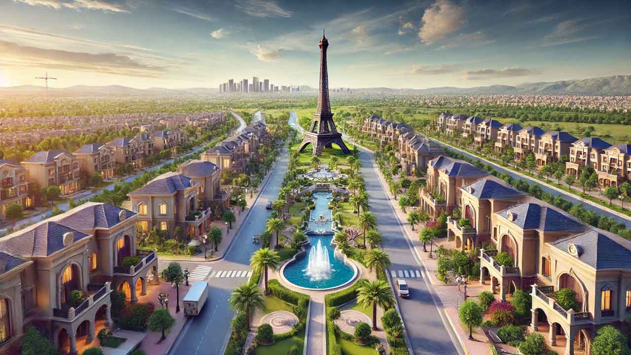 Includes Bahria Grand Mosque, CineGold Cinema, Eiffel Tower replica, Safari Zoo, and Bahria Country Club.